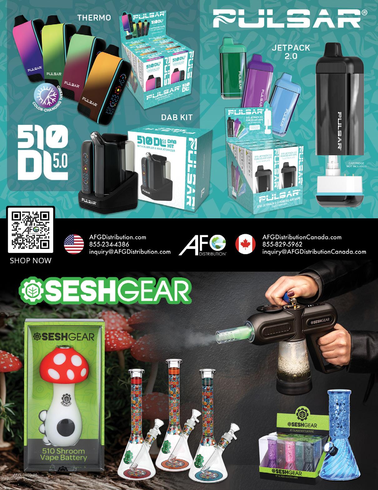 MJ Arsenal’s Alpine Series brings together sleek borosilicate glass and milled black walnut for a line that feels as good as it looks.With black walnut accents and clean glass lines, these pieces blend form and function—built to be used, and begging to be touched. See more in the Quest 4 the Best on Page 95.