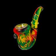 Intriguingly, the pipe is made of two layers of platinum-cured silicone. The exterior layer is transparent, giving the piece a glossy sheen and revealing the colorful inner layer. The Sherlock Spoons comes in four colorways: a subdued Winter theme that features dark shades of blue; a science fiction-themed green-and-blue planet option; a rainbow-splattered Cotton Candy model that suggests happy vibes; and Rasta colorway painted in familiar red, gold, and green.
