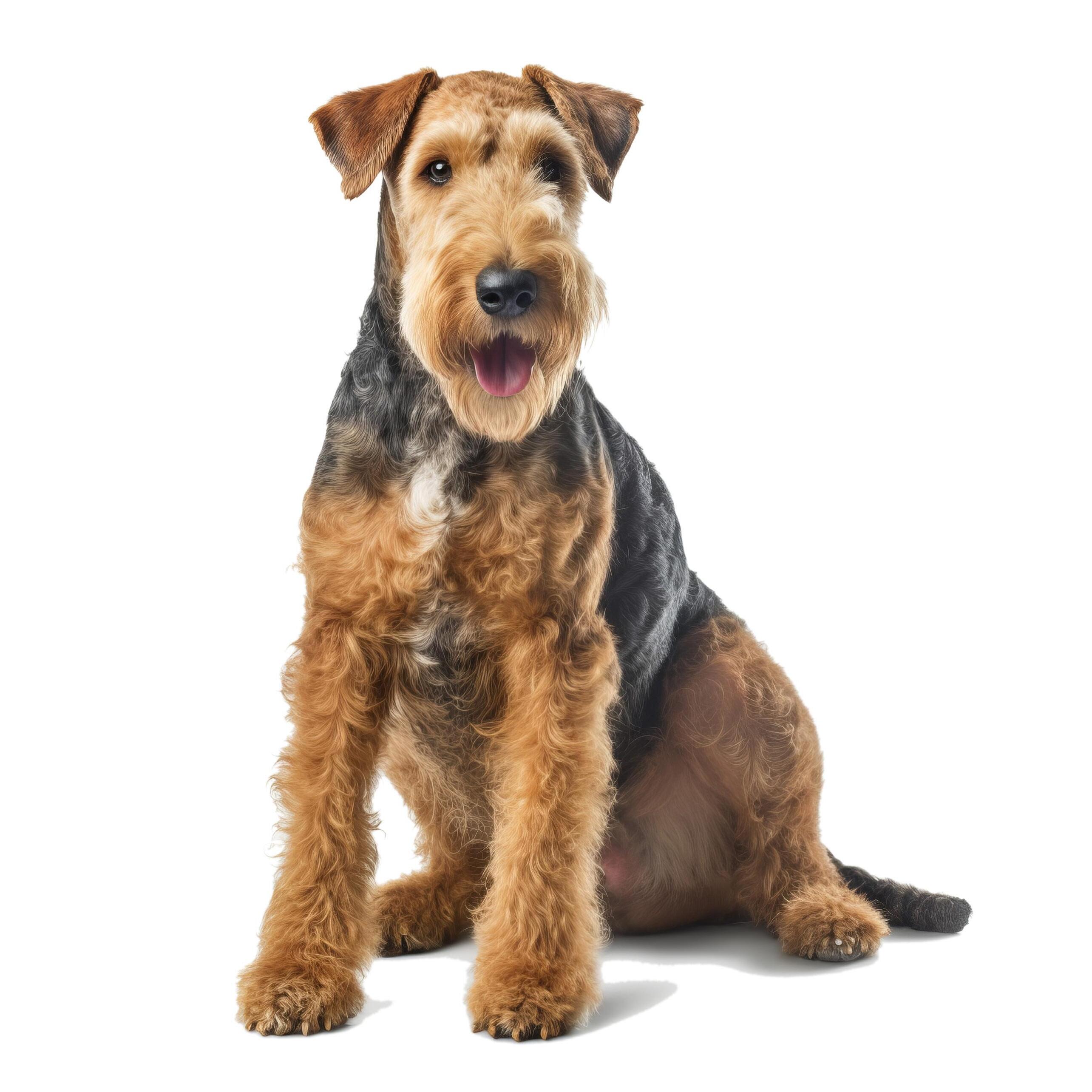 The Airedale Terrier is a medium to large-sized dog known for its distinctive appearance: