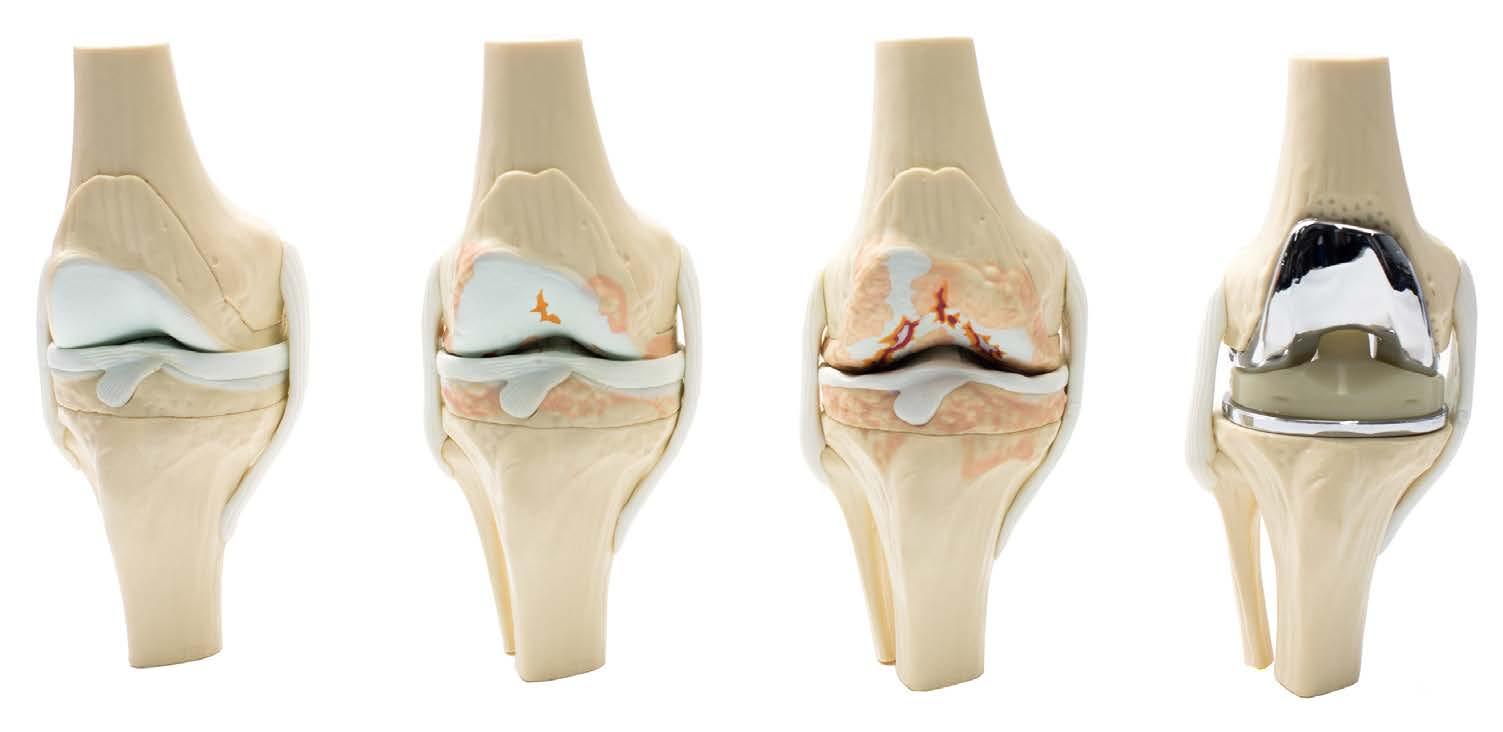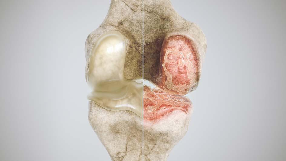 Healthy cartilage (left) versus diseased cartilage (right) in osteoarthritis.