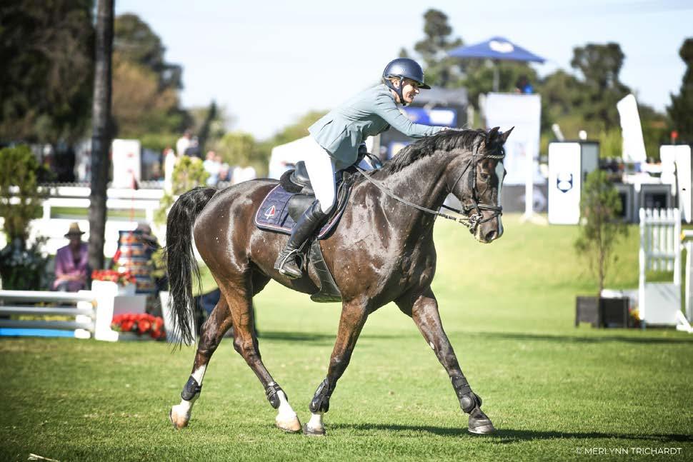 standing at the show to putting on his bridle (which he hated - he becomes a giraffe!). He did everything I asked; it was almost like he knew he was going to win. All the stars aligned on that day, and it was just meant to be; my instructor Carl Boonzaaier always said you have to go for it in the jump-off; sometimes it pays off, and sometimes you take a rail. But you must try! And we did, and it paid off. Mozart is now 19 years old and happily retired on a friend's farm, and still jumps the paddock fences to go wherever he wants.