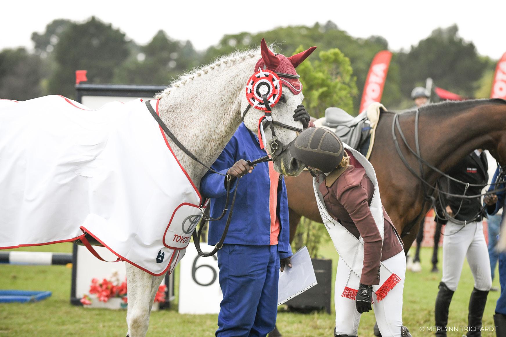 We then jumped the most picture-perfect clear second round, leaving me on four penalties. Nicole Horwood went in next and jumped a stunning clear, leaving us both on the same score, with two remaining riders that had scores lower than ours. Jan Kleynhans was next to go, also going clear in the jumping, but with an unfortunate two time penalties, leaving him on four penalties as well.