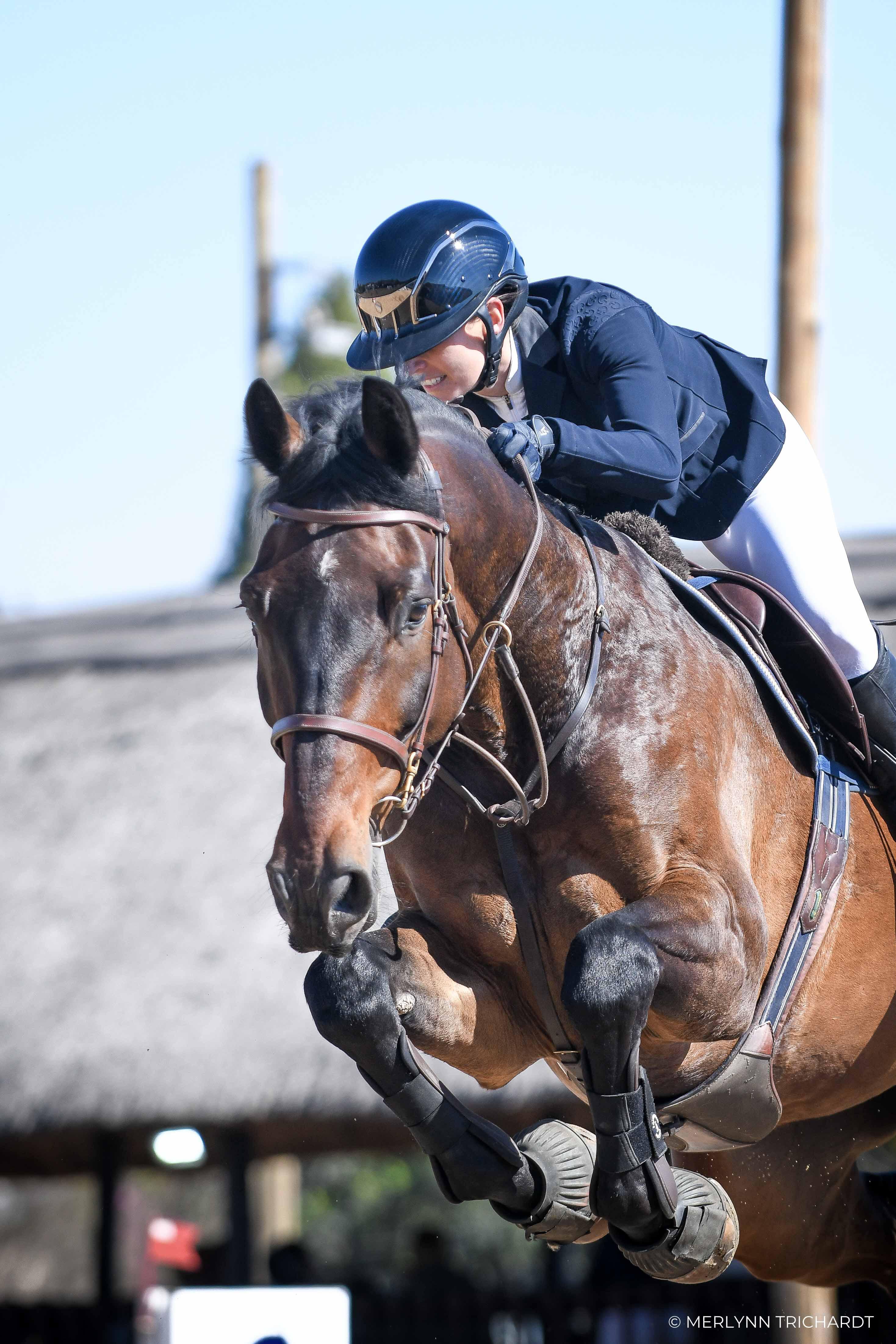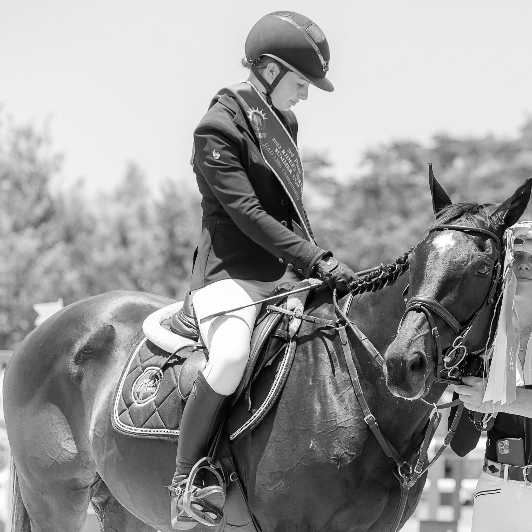 Charley suggested Capital Harrison; we all thought she was crazy, and I didn't think I would ever be able to ride this horse because he is big, strong, and just a buffalo. I got on anyway, and I'm not going to lie, he scared me quite a lot in the beginning, but the partnership has just grown from there. I've been riding him for about a year now, and here we are, having just jumped our first 1.40m classes!