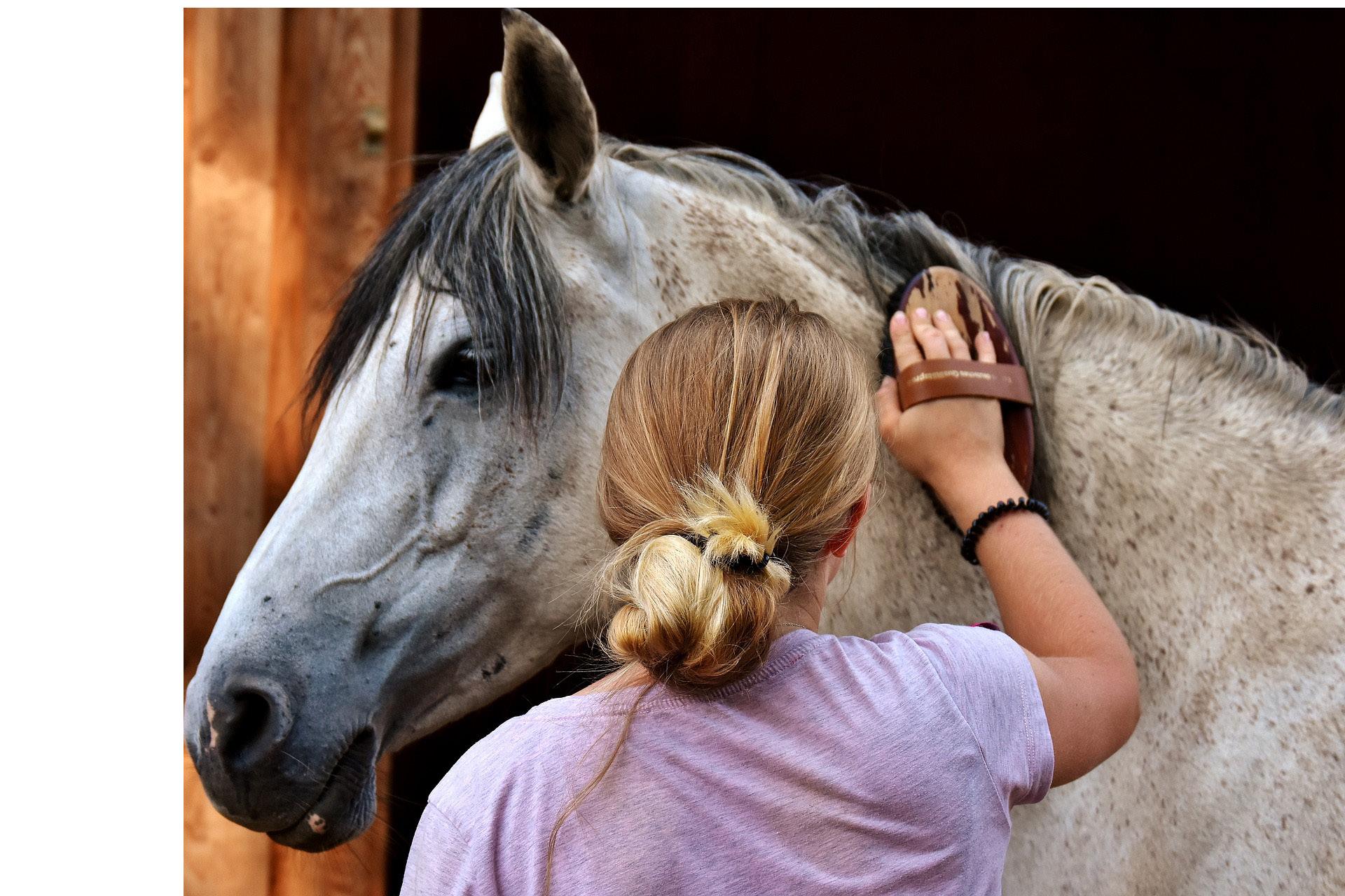 The rubber curry comb helps to remove loose hair and gives your pony a massage.