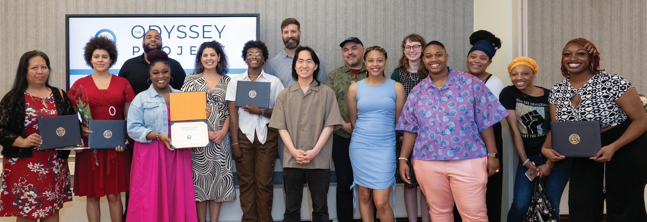 Interseminars, now in its third and final year, has definitely expanded our sense of who is hailed by the promise of humanities subject matter and methodology: faculty conveners have come from subject areas beyond “legacy” humanities departments and have attracted students and audiences from multiple colleges across campus. And the Odyssey Project continually reminds us that history, literature, art history, and philosophy land in different ways with incomeeligible adult students in Champaign-Urbana than they might with residential undergraduates at Illinois. We definitely have cause to think again about who the humanities is for, and who speaks for it, in the 2020s.
