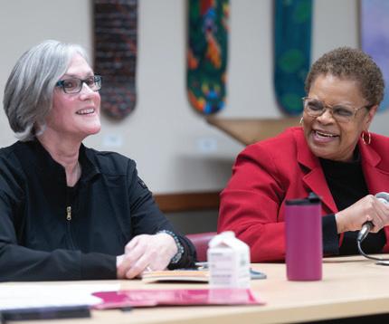 who shared the joys and struggles of what it means to serve those who live beyond the so-called safety net. In spring semester, we sponsored a conversation about the Tiny Homes Project, which featured Executive Director of Champaign County Health Care Consumers Claudia Lennhoff and Executive Associate Chancellor for Public Engagement Dr. Wanda Ward in conversation at the Urbana Free Library. We are planning an event which features our ongoing partnership with Sola Gratia Farm and the College of Education for spring 2025 (see p. 13).