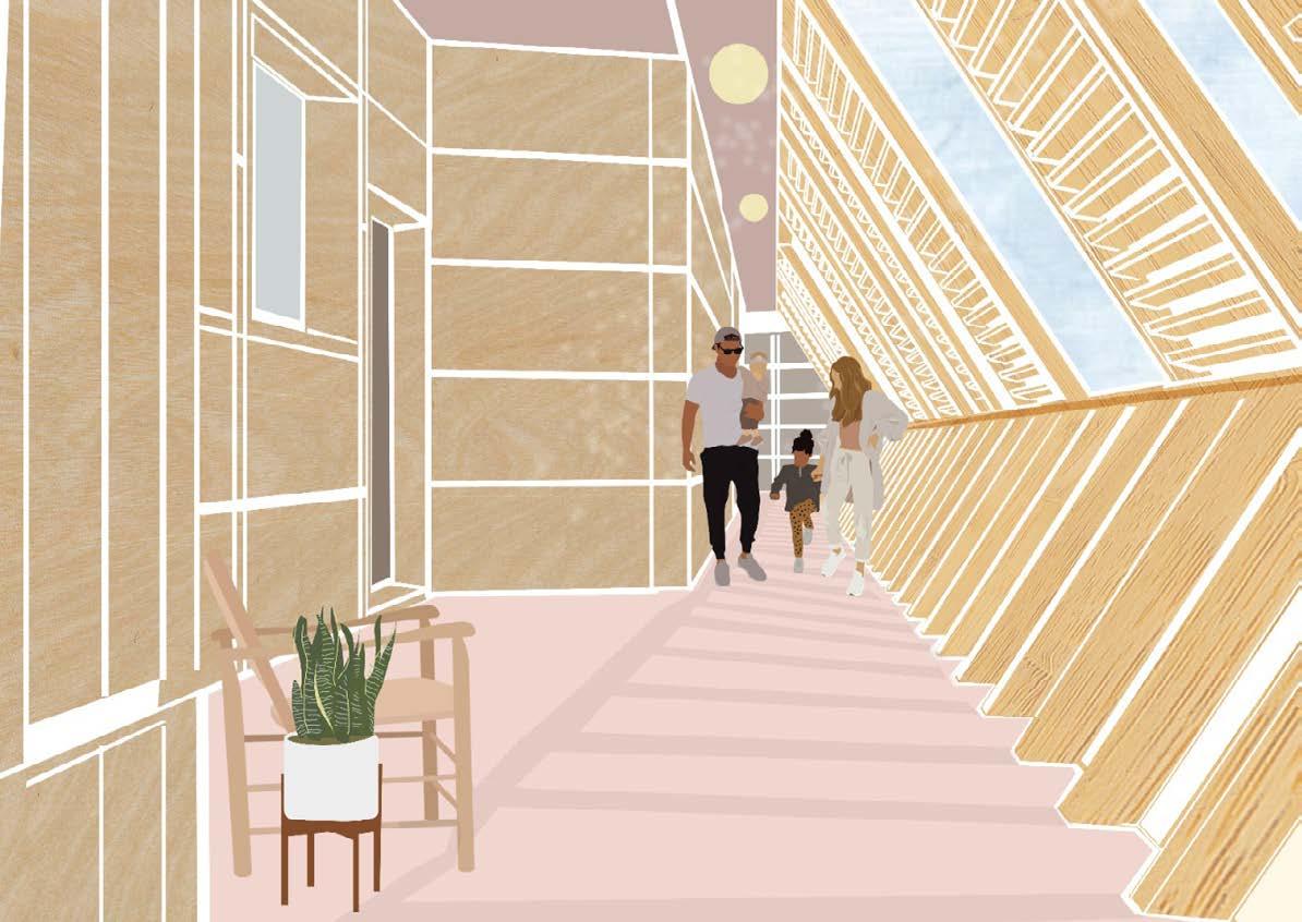 barrier between the swim and skate areas, as well as PV and solar systems on the roof, a cross ventilation floor plan and a canopy roof