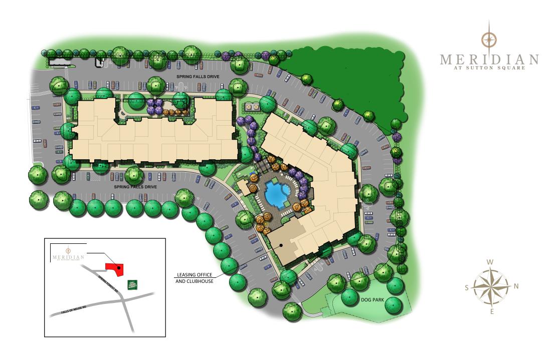 nity is located in the heart of North Raleigh, near the alls of Neuse and Spring Forest Road right near Jason's nd Scholar's restaurants. Established in one of Raleigh's as, Meridian at Sutton Square is within walking distance Harris Teeter, Starbucks, a variety of restaurants, local shopping and great entertainment venues.