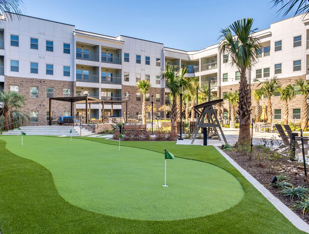 The centerpiece of Hawthorne at Fairmont is two large courtyard areas. One a peaceful pool oasis, the other houses a putting green and hammock grove, both perfect for lounging and entertaining. Residents also enjoy a two-story fitness center with state-of-theart equipment and ample space for wellness-focused living. A large double height spacious clubroom with stunning pool courtyard views, leash free bark park and a sky lounge with an expansive outdoor deck all add to the opportunities to unwind in the community!