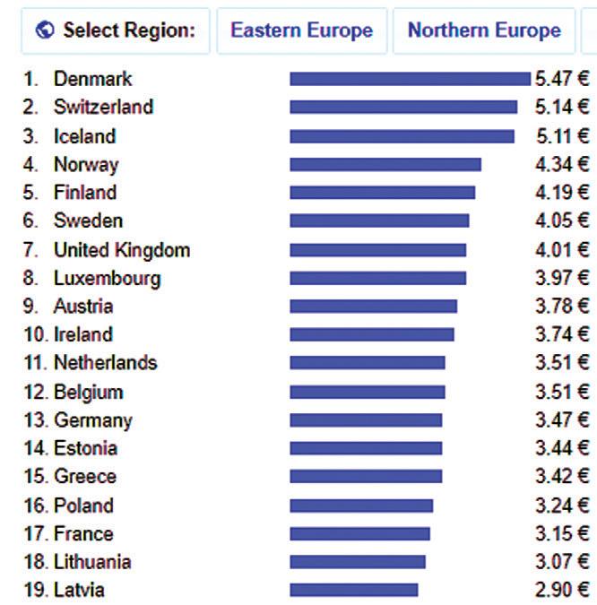 Slijedi Nizozemska, gdje je hektar 2023. stajao nešto više od 91 tisuće eura, u Luksemburgu, Austriji i Irskoj prosječna cijena kretala se od 35 do 42 tisuće eura. U Sloveniji i Danskoj hektar je bio gotovo dvostruko skuplji od prosjeka EU-a. U Češkoj, Poljskoj, Španjolskoj, Švedskoj, Grčkoj, Finskoj, Bugarskoj i Rumunjskoj cijena hektara bila je oko prosjeka EU-a.