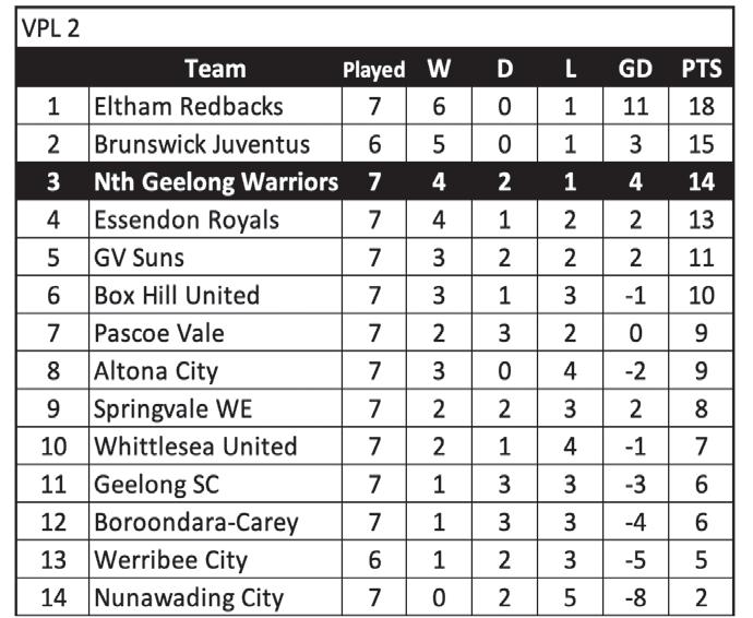 long Warriorsi ostvarili su besprijekoran nastup prošle subote na HC Kim Reserveu svladavši Altona City s 4-1 u utakmici koja je bila odlučena već do poluvremena. Ova nadmoćna pobjeda Warriorse je katapultirala na treće mjesto ljestvice, čime je postavljena pozornica za susret protiv vodeće momčadi Eltham Redbacksa idućeg vikenda. Warriorsi su u prvom poluvremenu bili izvrsni te su do odmora ostvarili vodstvo od 4-. Golove Warriorsa postigli su Ivan Razumić, Ionut-Casian Anghel, Angus Chapman te Aguer Manyiel - njihov zajednički učinak u završnici jednostavno je bio previše za nespremnu obranu Altone. U drugom poluvremenu igra je bila odmjerenija, North Geelong uspio je rutinski održati rezultat i odnijeti sva tri boda. Ova velika pobjeda Warriorsima će donijeti mnoštvo samopouzdanja dok se pripremaju ugostiti vodeću momčad ljestvice Eltham Redbackse na domaćem terenu – u subotu 29. ožujka. Susret u 17 sati.
