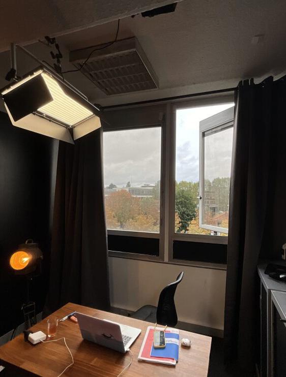 Un bureau type, ici transformé en studio photo. 2023. Photo prise par étudiant.