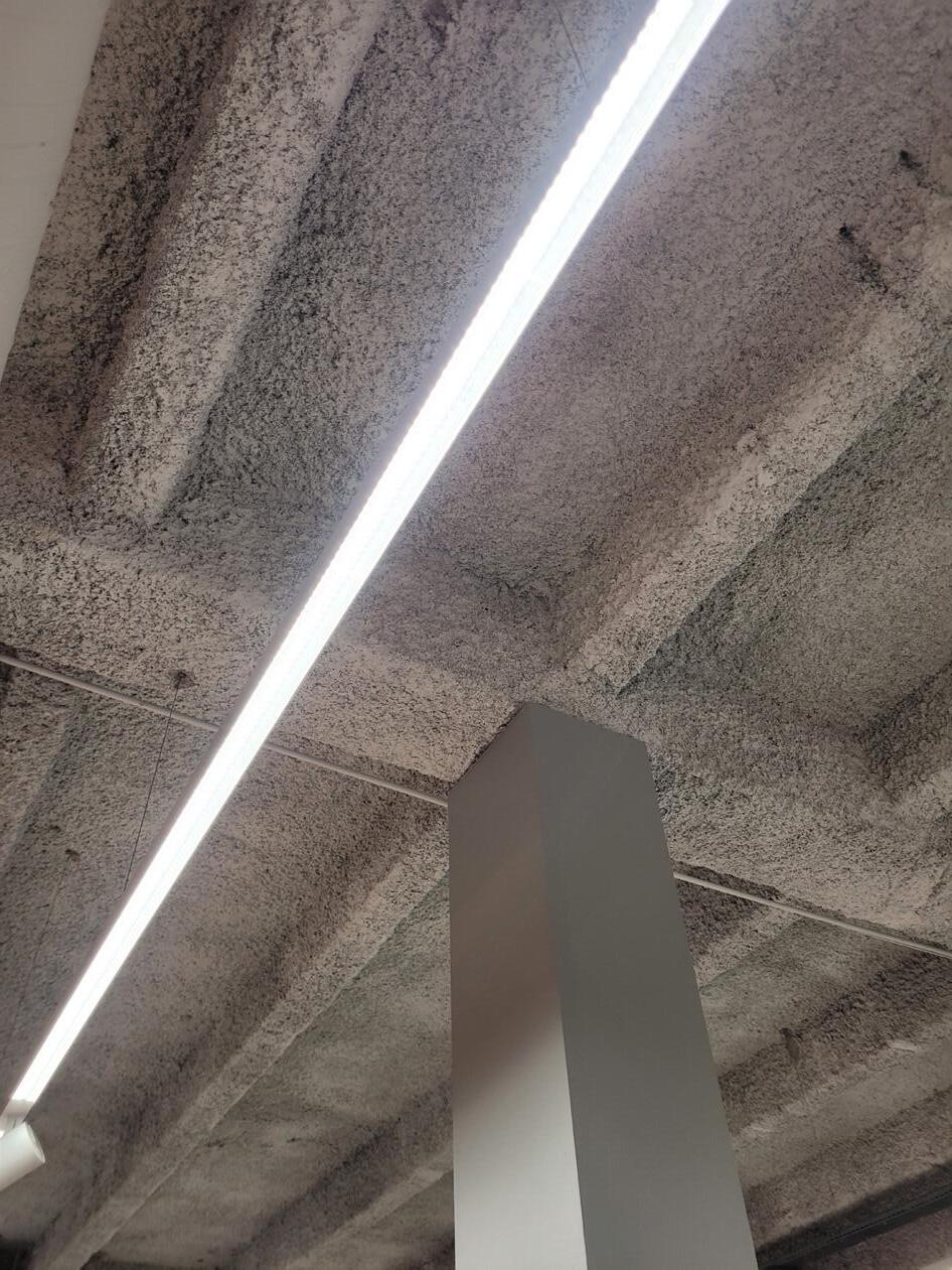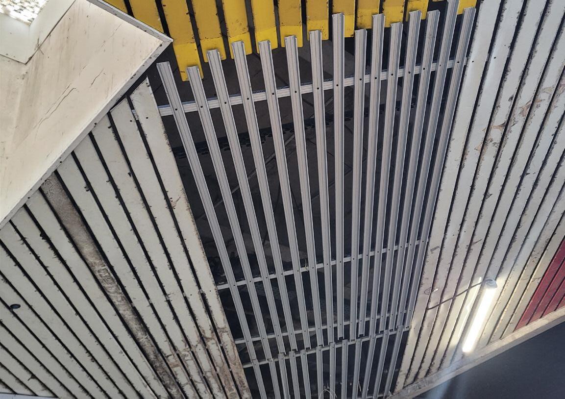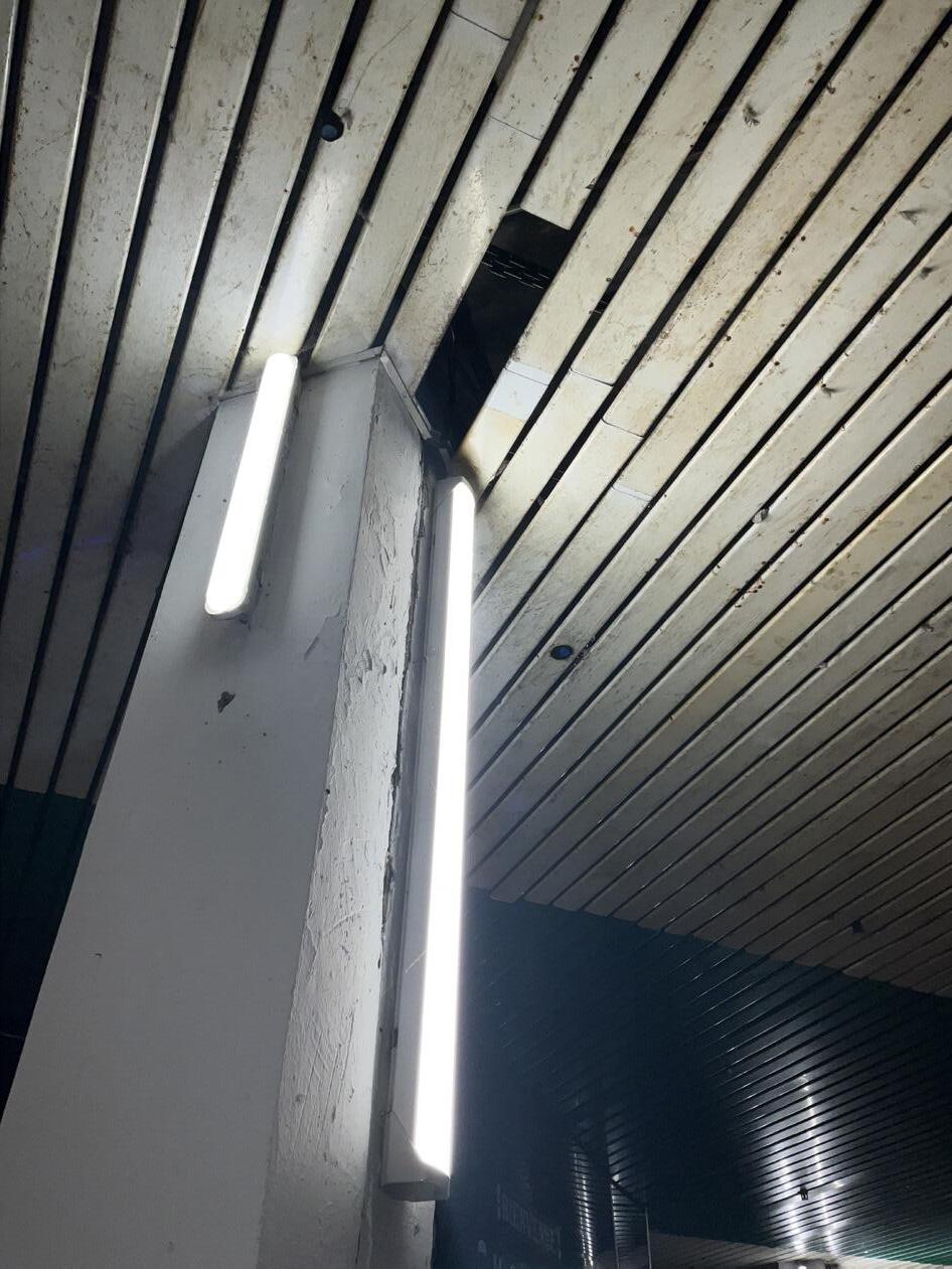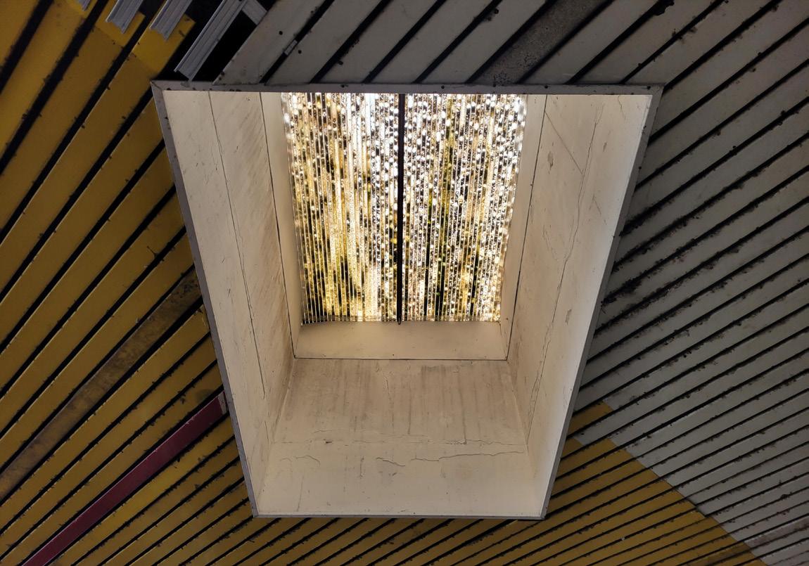 Le peu de lumière naturelle est amenée par des puits de lumière qui ont été mal entretenus. 2023.