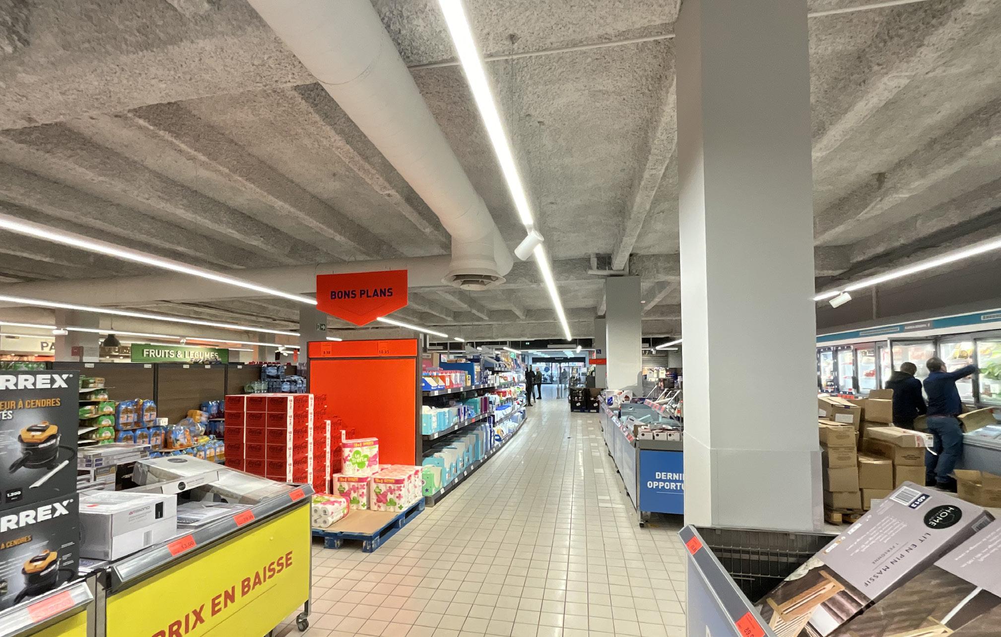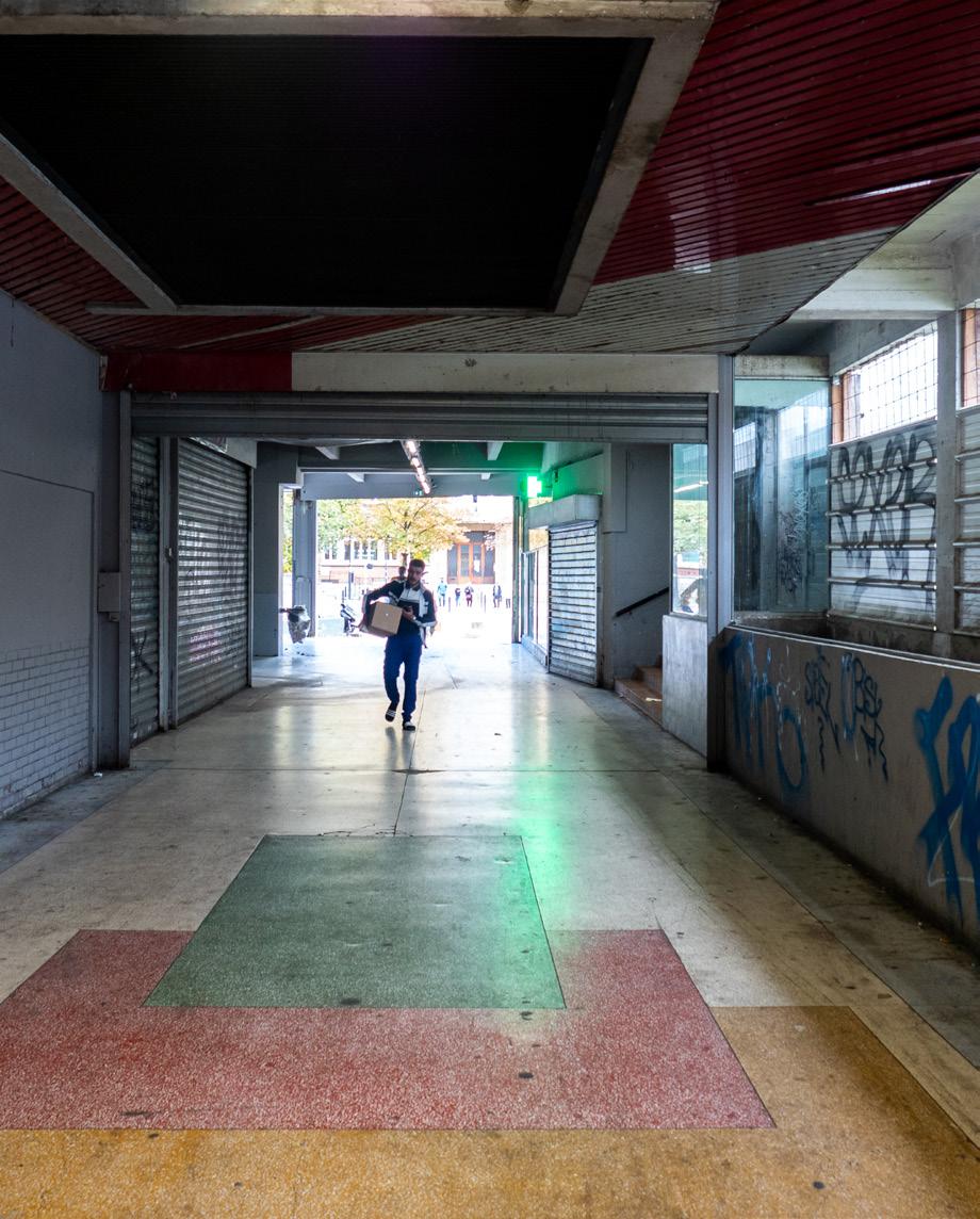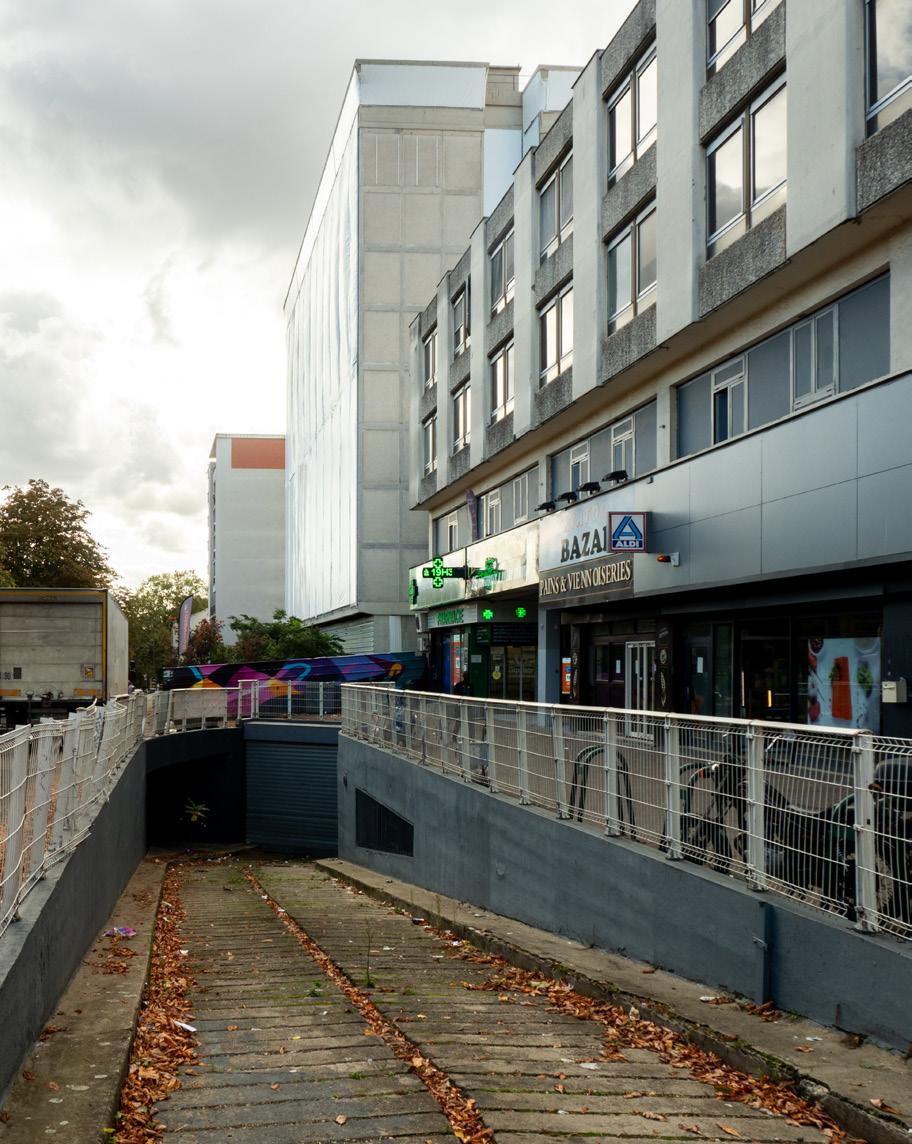 Le hall donnant sur la poste, la boulangerie et le supermarché Aldi au RDC.2023.