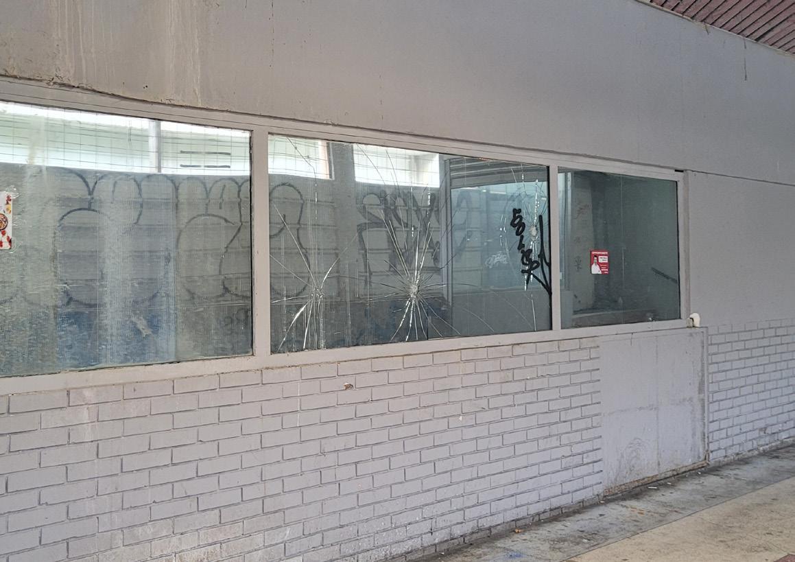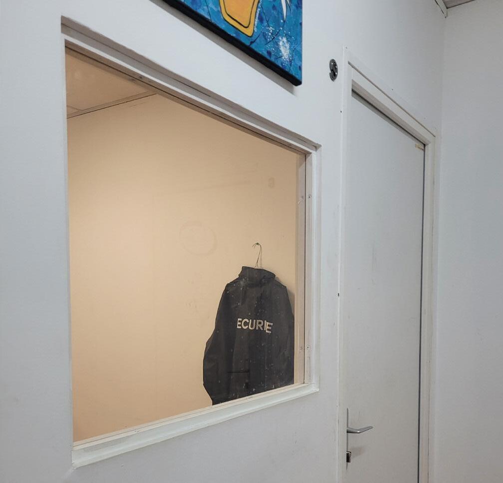 Une vitre sans tain qui a du être caillaisée. 2023. Photo prise par étudiant.