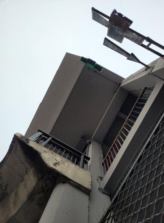 La passerelle de la façade arrière du bâtiment. 2023. Photo prise par étudiant.