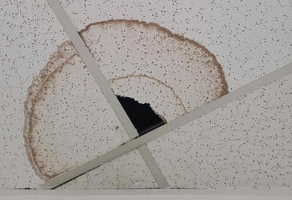 Une partie du faux-plafond est tombée 2023. Photo prise par étudiant.