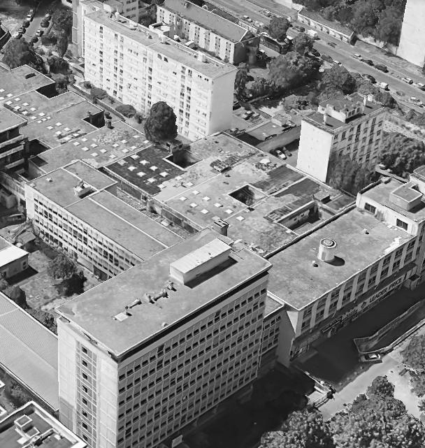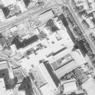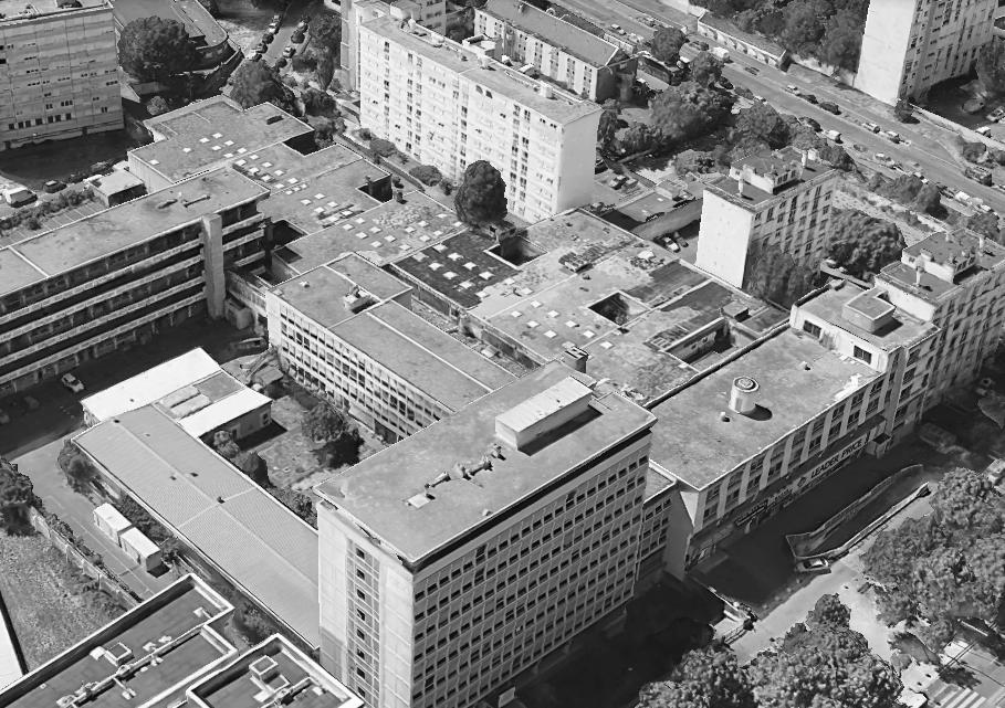 La façade arrière du bâtiment, vue de haut. 2023. Photo prise par étudiant.