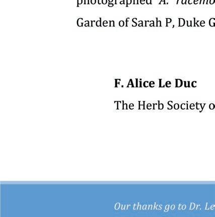 In accordance with the First Amendment of the U.S. Constitution, authors or speakers may quote scientific literature, ethnic or historic literature and may cite how they personally use herbs. However, none of the information published/presented may serve as a recommendation or an endorsement of any particular medical or health treatment. The Herb Society of America is not liable for any decision made or actions taken or not taken due to use of materials published and/ or presented. Electronic links are provided as an educational service only.