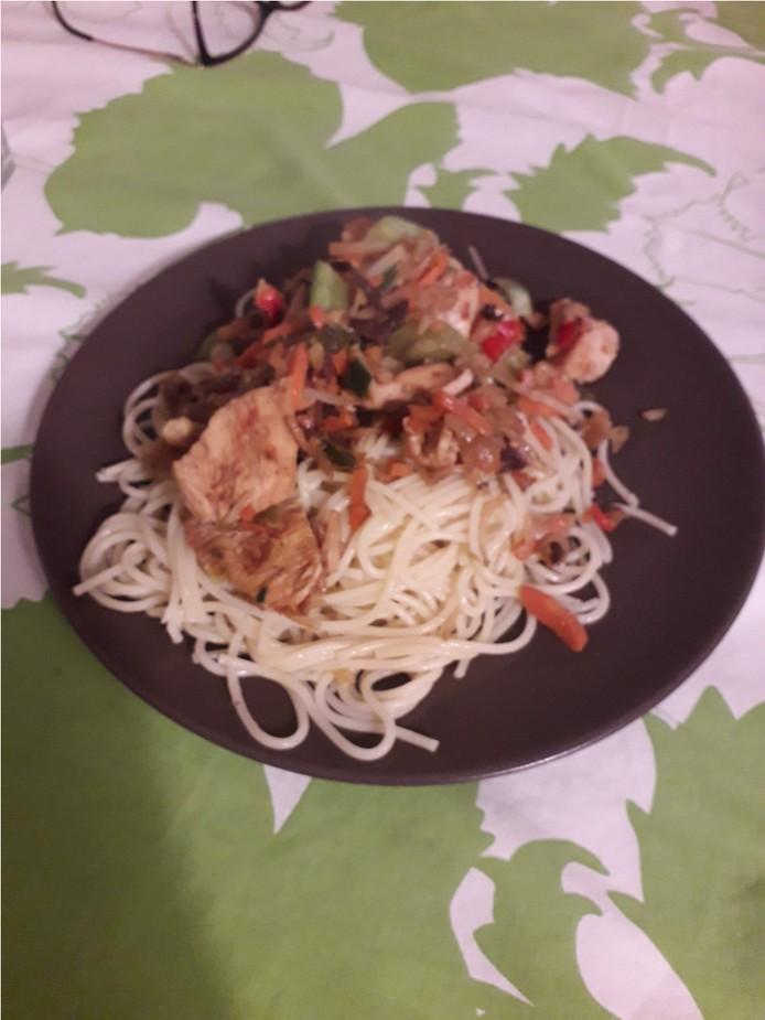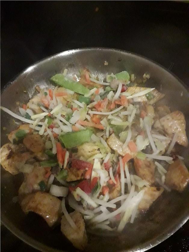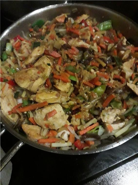 • Frango com legumes salteados (preparação)…………..