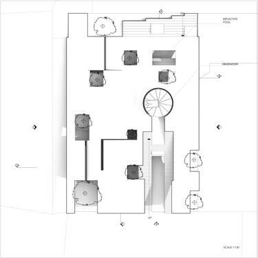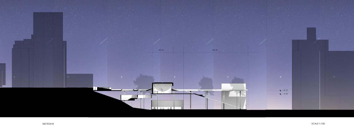 These elevations are meant to show the gradual change in the topography of the ground and how the building adjusts and changes in relation to it. The building lays low and does not extrude from the ground so that it is not intrusive of the existing Jackie Robinson Poolhouse building, in which so much effort has been put to conserve. You can also see how the observatory can directly be accessed by the public without going through the formalities of a bath-house and immediately draws attention to the eye, setting the tone for a person about what they are about to experience.