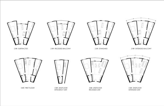 All the units are different from each other, because there are no two people who are the same.This hopes to increase socializing in the building, because people would be more interested in seeing each other’s spaces. Social condensers fail because you cannot force people to be in a place together. That is why I made my social spaces next to kitchens and music rooms, because food and music is a majors ocial attractor. They are also in places with the maximum amount of light and they cross circulations in corridors.