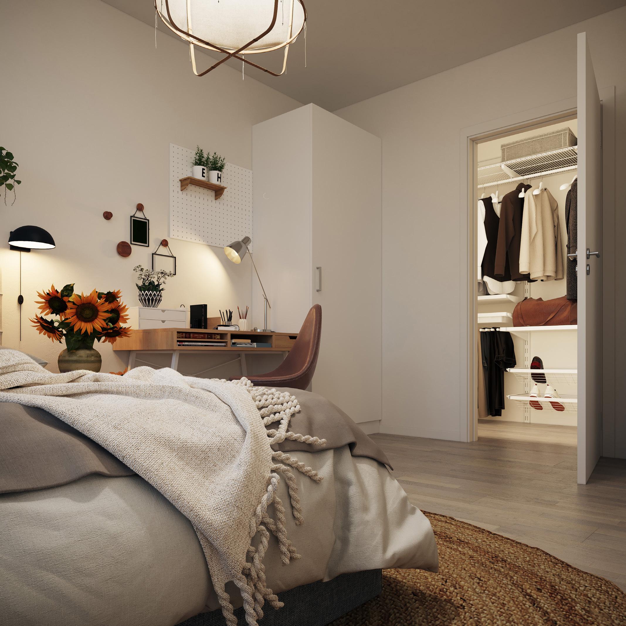 I brf Växelns femmor har arkitekten skapat möjligheter för att du enkelt ska kunna anpassa din bostad. Det önskvärda allrummet gör att du enkelt kan få till den perfekta planlösningen för den fas du befinner dig i livet. Det kan inrymma allt från lekrum när barnen är små, ett extra vardagsrum eller arbetsrum. Den kreativa lösningen för klädkammare och badrum i anslutning till master bedroom är också unik och kan liknas med det som kallas en-suite.