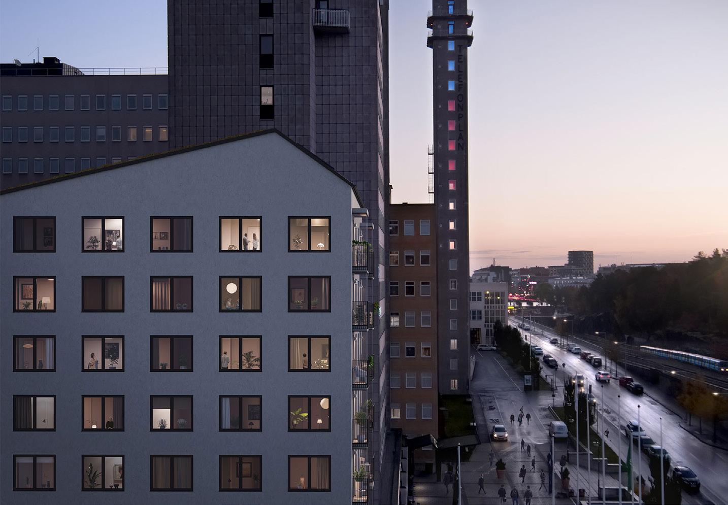 HSB brf Dialogen – Punkthusets lägenheter har stora fönster som med höjd skapar luftiga och ljusa rum. Lägenheterna blir yteffektiv a med smarta öppna planlösningar, som gör att även lite mindre lägenheter känns stora.