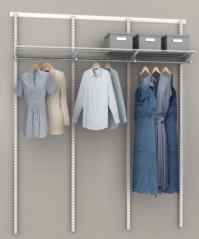 har antingen 2 eller 4 dörrblad beroende på garderobslängden. Tak- och golvskena följer dörrprofilens färg. Inredning ingår i omfattning enligt lägenhetsritning