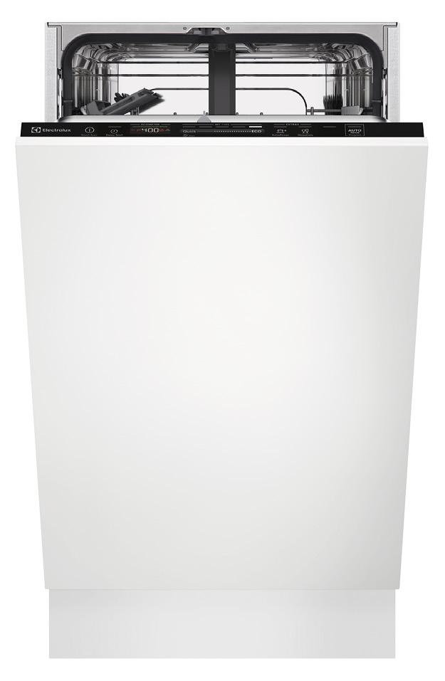 Diskmaskin Helintegrerad, 45 cm, E, 46 dB, 9 standardkuvert, 8 program, Bestickkorg i underkorg, Justerbar överkorg, Startfördröjning, Elektronisk salt-/ glansmedelsindikator, Beem on floor röd och grön, Autosensor, AirDry