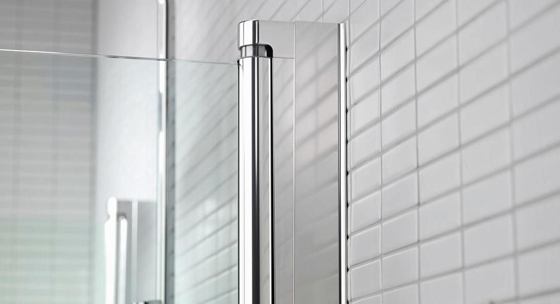 LINC ANGEL ORIGINAL Raka, svängbara duschväggar i klarglas, blankpolerad profil och Grepp Mått: Varierande bredd beroende på utrymme, höjd 2000 mm