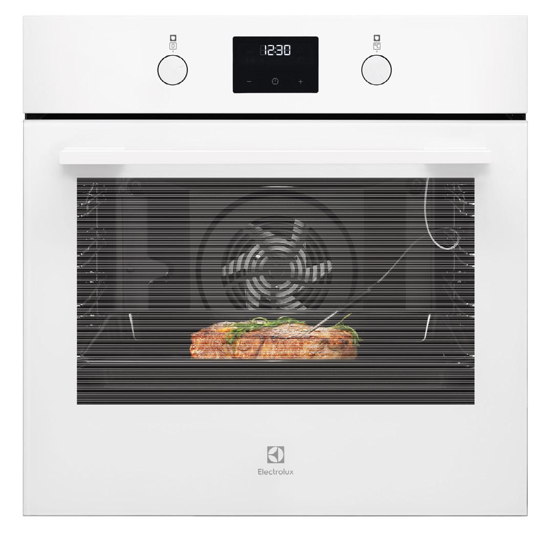 Inbyggnadsugn, A, 72 liter, Vit, Varmluft, Matlagningstermometer med auto-off, Pop outvred, LED-timerdisplay, Mekaniskt lucklås, Slät emalj –‒AquaClean