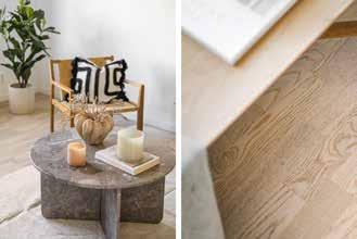 Gemensamt för alla lägenheterna är extra breda fönsterbrädor i slipad kalksten från Naturstenskompaniet som ger en elegant touch och möjlighet till att inreda fönstren lite extra. Väggarna är vackert vitmålade och golven är klädda i vitpigmenterad, mattlackad trestavs-ekparkett från Kährs.