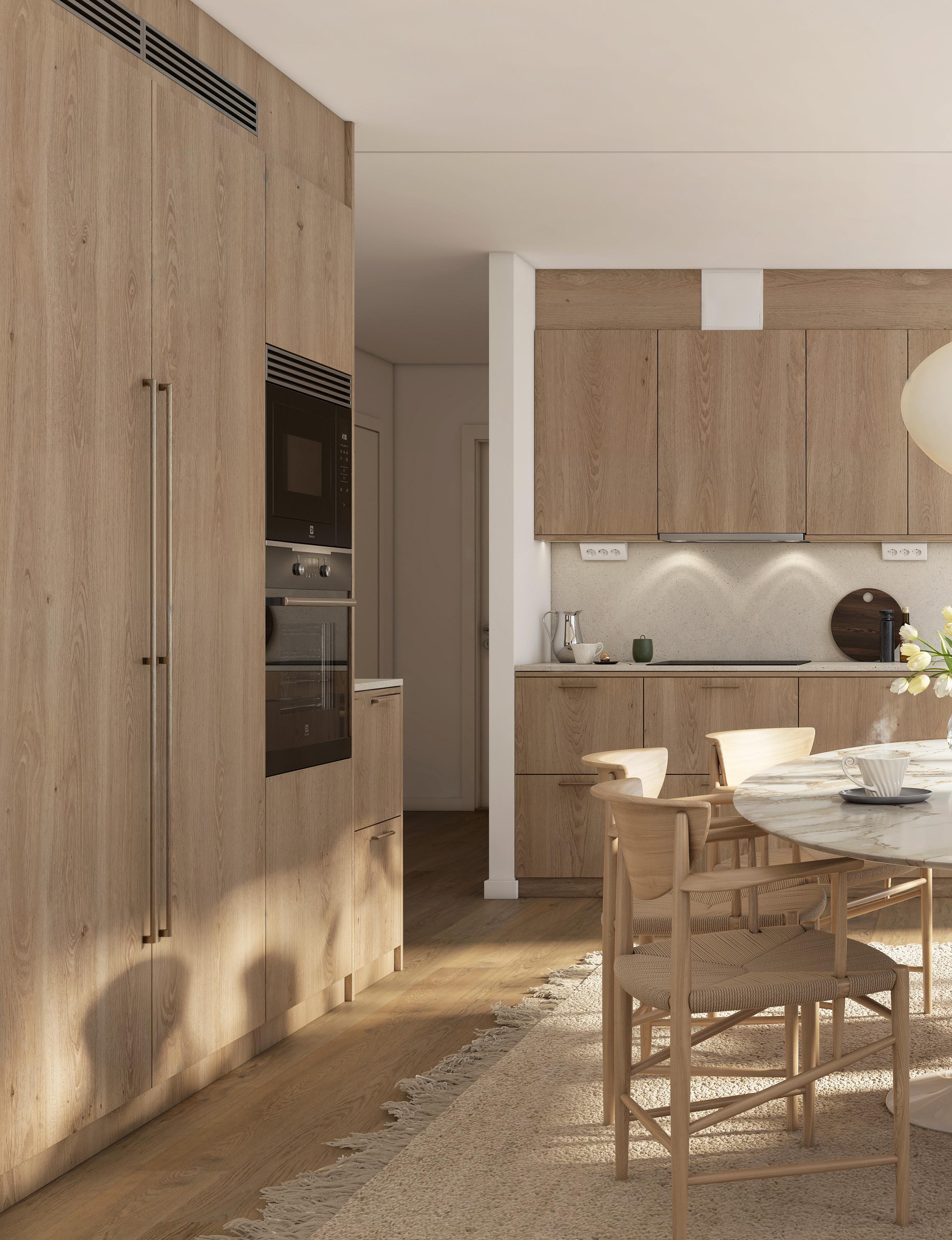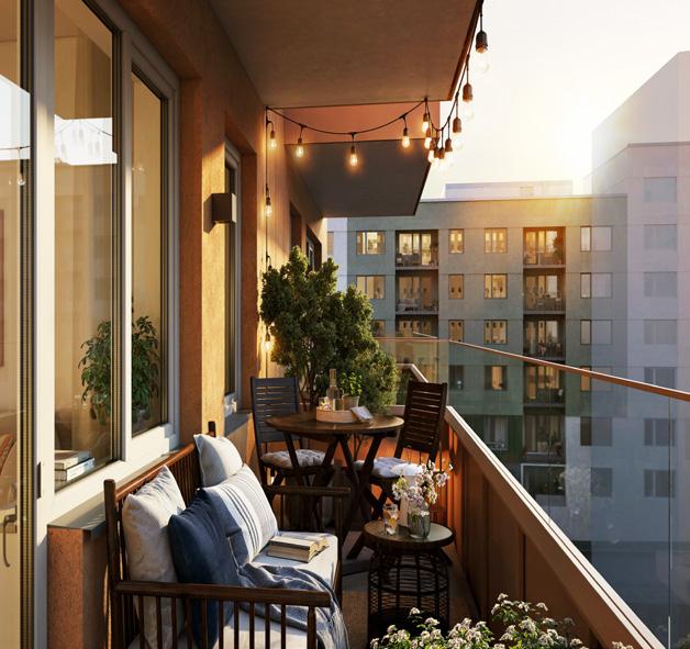 Här finns även moderna bekvämligheter som cykelverkstad, garage, miljörum och återvinning – allt för en hållbar och bekväm vardag. Med konst i kvarteret, noggrant utvald färgsättning och arkitektur med personlighet skapas en plats som inspirerar, lever och välkomnar.