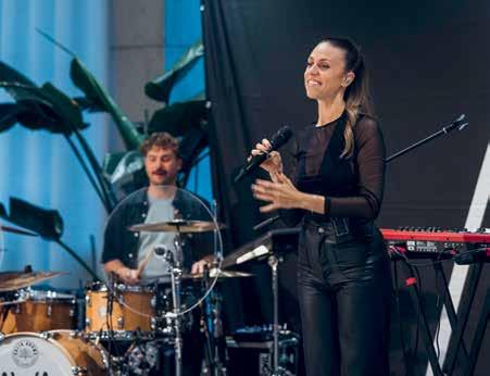 Den Schlusspunkt am Festival setzte ein Live-Konzert. Die drei HSG-Alumni Nicola Holenstein, Andy Schwendener und Frontsängerin Kim Lemmenmeier sorgten mit ihrem Synth-Pop-Sound für Party-Stimmung. Das Trio hatte ihre St.Galler Band «We Are Ava» vor rund