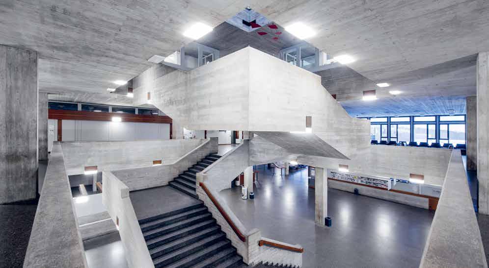 Campus: Inklusiv und Netto-Null Was in Lehre und Forschung entsteht, spiegelt sich auch im Campusbetrieb wider. Die HSG arbeitet konsequent an ihrer Vision eines Netto-Null-Campus. Einige wichtige Schritte zur Erreichung ihrer Nachhaltigkeitsziele hat die HSG mit modernisierter Gebäudetechnik, der Umstellung auf 100 % Wasserkraftstrom, der Installation von Solaranlagen, biodiversitätssensiblen Grünflächen sowie einem barrierefreien Ausbau neuer Gebäude schon getan. Mit dem geplanten Campus Platztor «Tsumiki» entsteht zudem ein Leuchtturmprojekt für Bauen im postfossilen Zeitalter – ein baulicher Ausdruck der strategischen Ziele der Universität.
