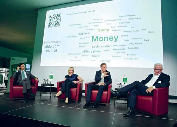 Unter den Festivalbesuchenden befanden sich auch zahlreiche HSG-Alumni-Clubpräsidenten. Sie hatten sich an den beiden Vortagen zum Club Presidents‘ Meeting im Square getroffen. Zum weltweiten HSG-Alumni-Netzwerk gehören über 190 Clubs, die rund um den Globus beheimatet sind und mit ihrem Engagement zu einer lebendigen Community an der Universität St.Gallen beitragen. Rund 80 Präsident:innen der Clubs waren der Einladung gefolgt, um am zweitägigen Meeting vom 2. und 3. Oktober über eine gut funktionierende Campusgemeinschaft zu diskutieren, die auch den Herausforderungen der Zukunft gerecht wird.