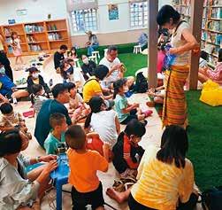之外,也與新竹縣政府文化局持續合作, 於每月第一個週日下午,在文化局圖書 館辦理新住民親子說故事活動,帶領親 子共同閱讀多元文化或性別繪本。同時