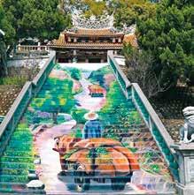 新埔義勇廟階梯有漂亮的客家彩繪。