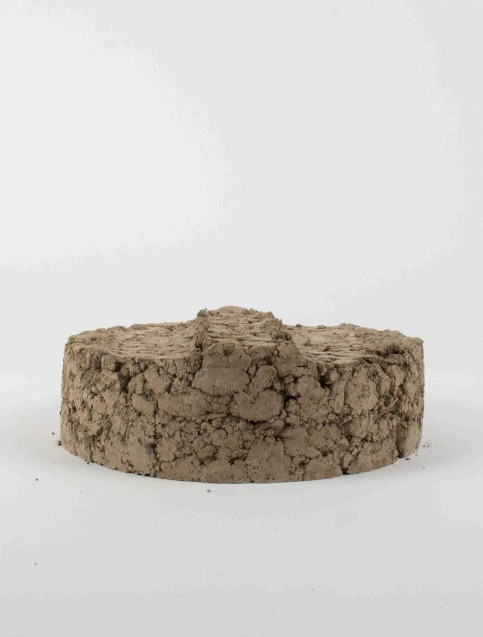 Aushubmaterial – das beim Bau von Häusern und Infrastrukturen anfällt – ist mit 40 - 60 Millionen Tonnen jährlich der grösste Materialstrom der Schweiz. Ein beachtlicher Teil davon wird heute deponiert. In einer gestalterischen Auseinandersetzung mit dieser wenig genutzten Ressource ist eine kleine Serie von Hockern aus Stampflehm entstanden. Das Aushubmaterial – eine Mischung aus Lehm, Kies und Sand – stammt von verschiedenen Baustellen aus der Umgebung. Durch das Stampflehmverfahren wird der Hocker zum Stempel, der die Beschaffenheit des Bodens vor Ort im Objekt aufnimmt.