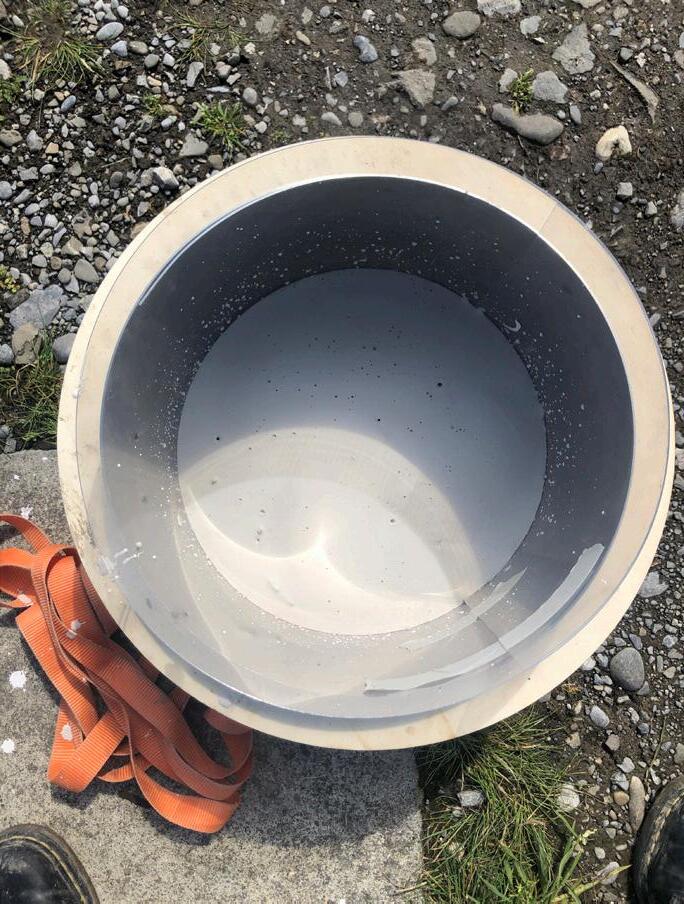 Das Aushubmaterial muss nur leicht feucht sein, auf keinen Fall klebrig. Mittkerweile konnte ich die richtige Konsistenz mit den Händen ermitteln.