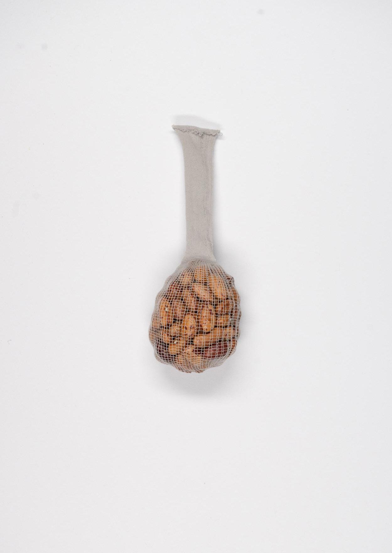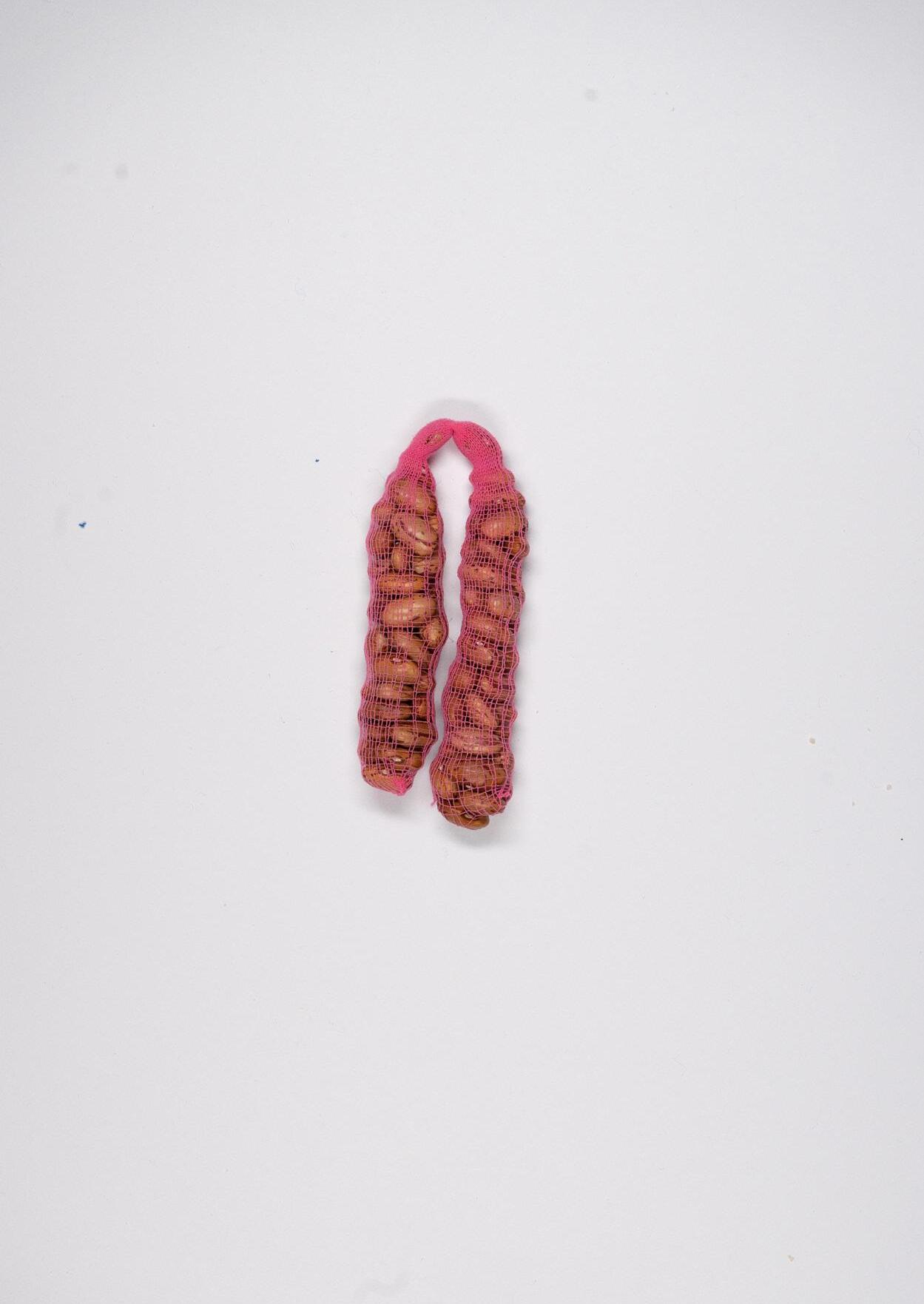 material: gummigarn, borlottibohnen