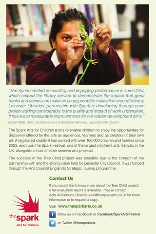 Contact Us If you would like to know more about the Tree Child project, a full evaluation report is available. Please contact Adel Al-Salloum, Director adel@thesparkarts.co.uk for more information or to request a copy. Visit www.thesparkarts.co.uk