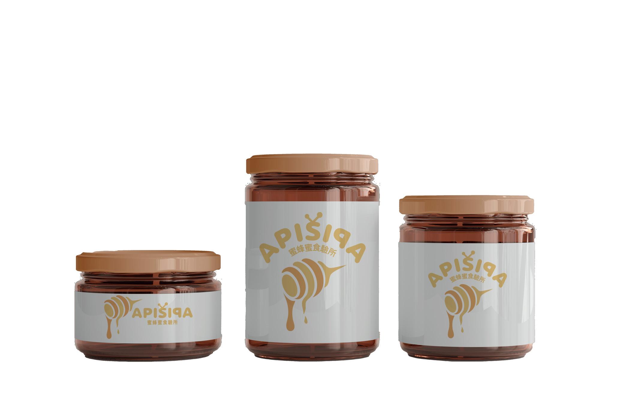 商標以蜂蜜棒沾著蜂蜜流下的狀態進 行簡化,流動的意象讓商標增添了活潑 生動的氣息,而蜂蜜棒尾端則模擬螫針 來設計。