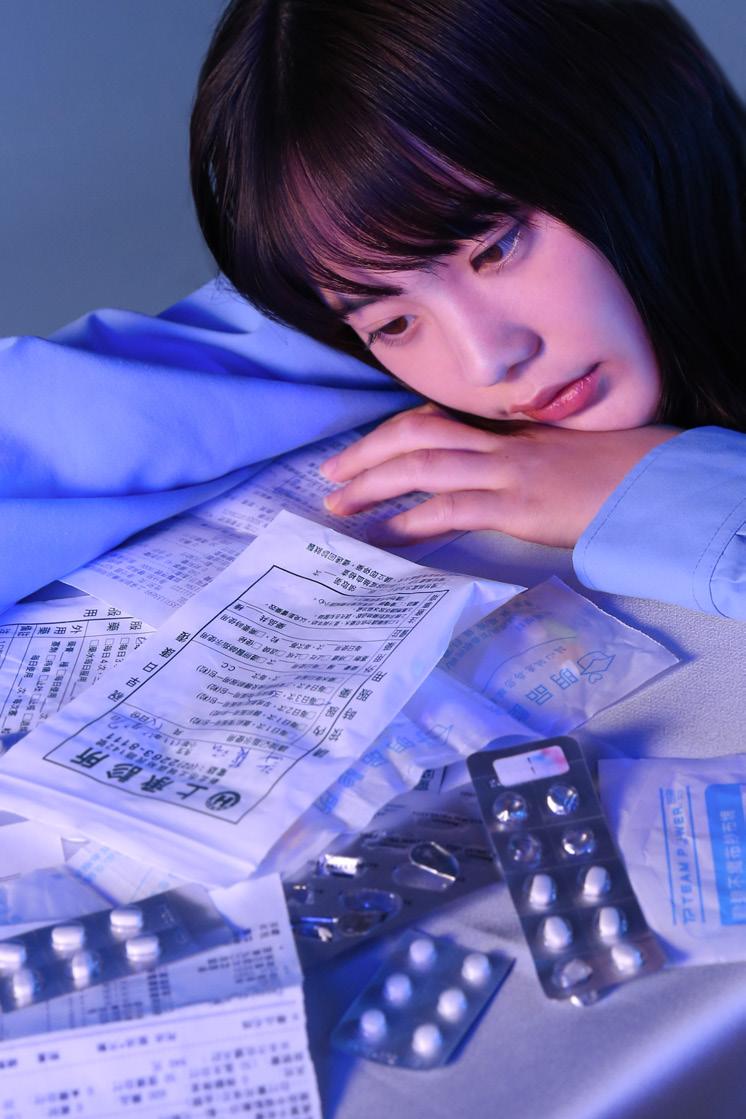 利用此次拍攝反映出近期頻頻生病的 內心憂鬱,面對吃藥的厭倦、身體不適 的無助,種種情緒街投射於作品種,整 體畫面將以藍色調呈現。