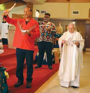A Mass honoring St. Kateri Tekakwitha was celebrated recently at Holy Family Church in Grand Caillou. Bishop Shelton J. Fabre was the main celebrant of the Mass which was concelebrated by priests of the diocese. The Mass featured traditional American Indian dancing and regalia as well as an Order of Blessing a married couple within a Mass on the anniversary of marriage with an American Indian Blanket Ceremony.