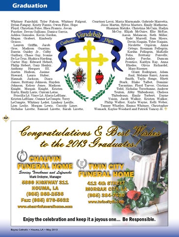 Congratulations & Best Wishes to the 2013 Graduates! CHAUVIN FUNERAL HOME Serving Terrebonne and Lafourche Mark Ordoyne, Manager