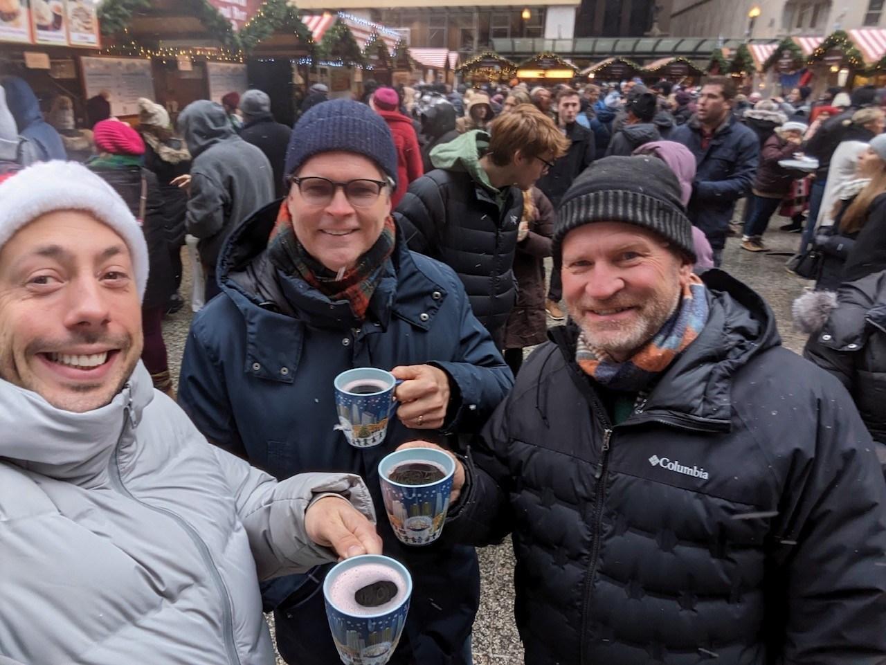 For 10 years straight the Dynamic Trio have cherished a mug of spiced wine together at Christkindlmarket. Belying the notion that one shouldn’t drink during work.