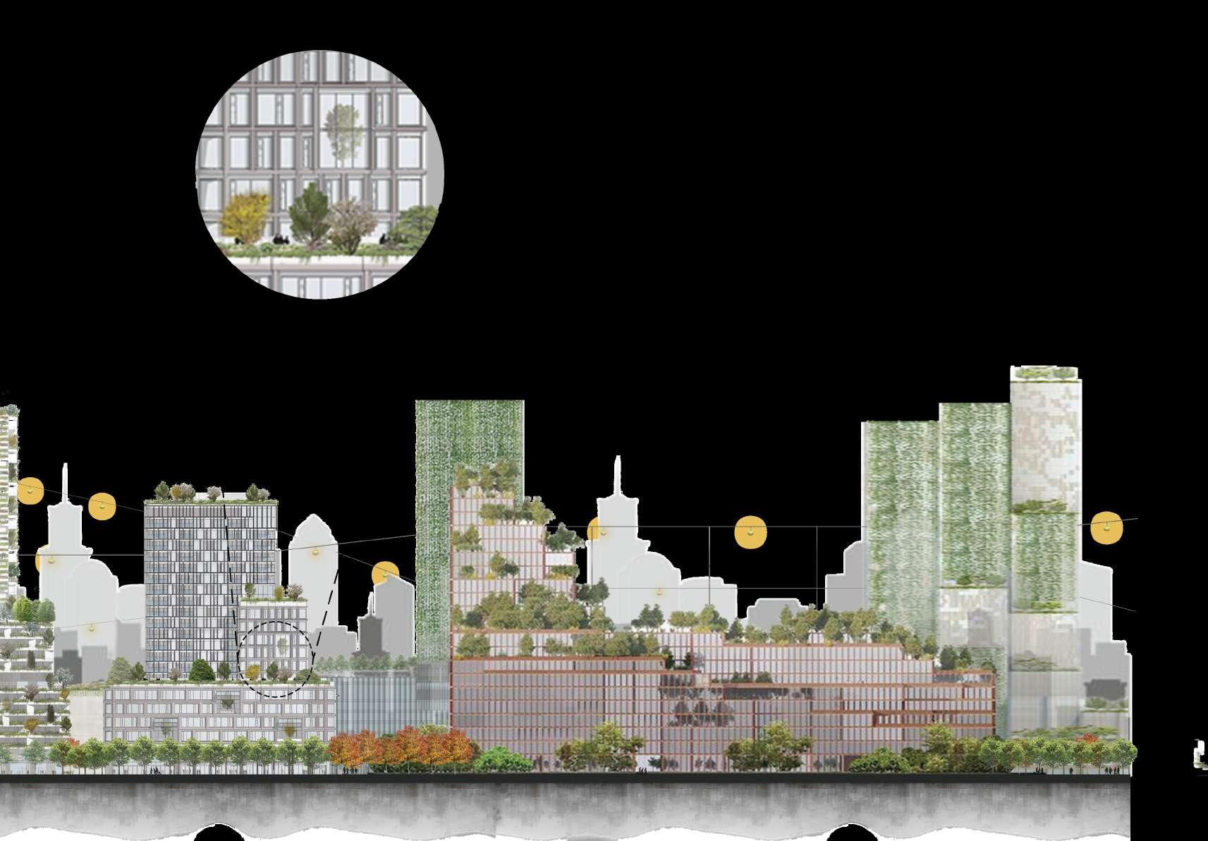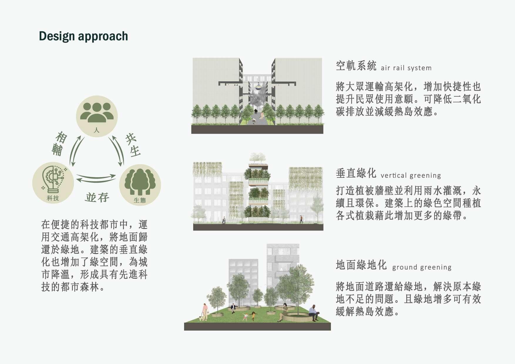 將地面道路空間還 給綠地,解決原本 綠地不足的問題, 並減緩都市叢林造 成的熱島效應。