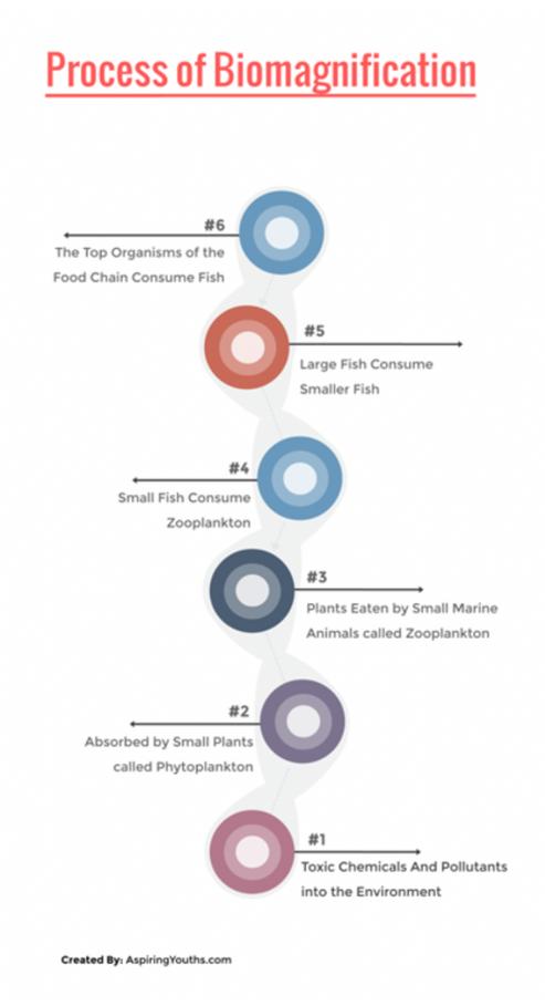 In 1956, in Japan, the Minamata disease was first discovered when thousands of people contracted an inexplicable sickness. It was later found out that it was caused due to high levels of mercury in their bodies transferred from the fish that they had consumed This specific incident had been initiated by an industrial plant secreting its toxic by products, including mercury, into the nearby water bodies Approximately half the people who contracted this disease died after demonstrating severe symptoms like ataxia, numbness, paralysis, loss of peripheral vision, etc. This is the extent of mercury biological magnification. Biomagnification refers to the increase in the concentration of contaminated or harmful substances through the food chain. Think about it this way, the ocean water has a few toxic chemicals from pesticides, industrial waste or mining activities. This water is taken up by the aquatic plants and the fishes living in it. But the fish also consumes multiple of these plants and thus has a greater amount of contaminants from both the water and the plant that it consumed We, as humans, eat multiple fish and ingest an even greater amount of the, perhaps, life threatening substance Thus, as the food chain progresses, the substance is accumulated through the food that organisms consume and lead to the highest concentrations in the highest trophic animals. But this also means that vegetarians intake a much lesser quantity of harmful chemicals than non vegetarians do!